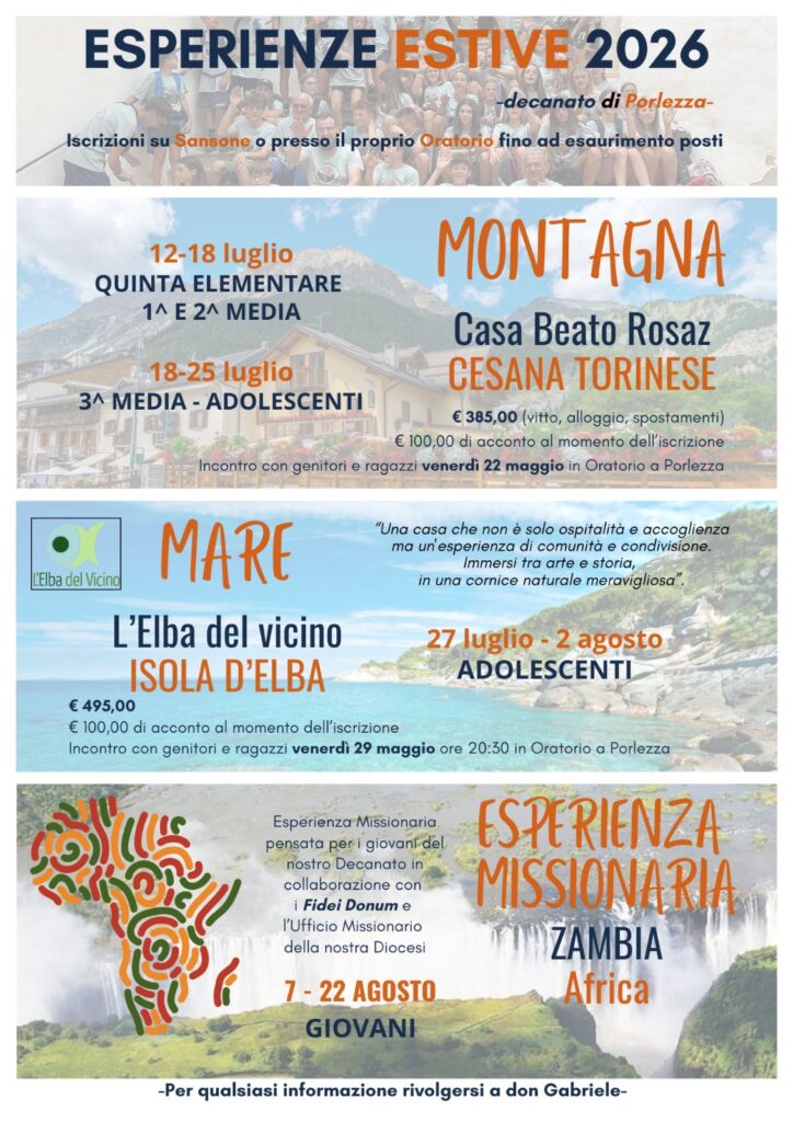 Il Decanato di Porlezza, appartenente alla Diocesi di Milano, rappresenta un’affiatata unione di comunità parrocchiali territorialmente vicine, unite da un comune impegno: condividere la missione della Chiesa nell’annuncio del Vangelo, nella vicinanza alle persone e nella testimonianza della vita nuova portata da Gesù Cristo.