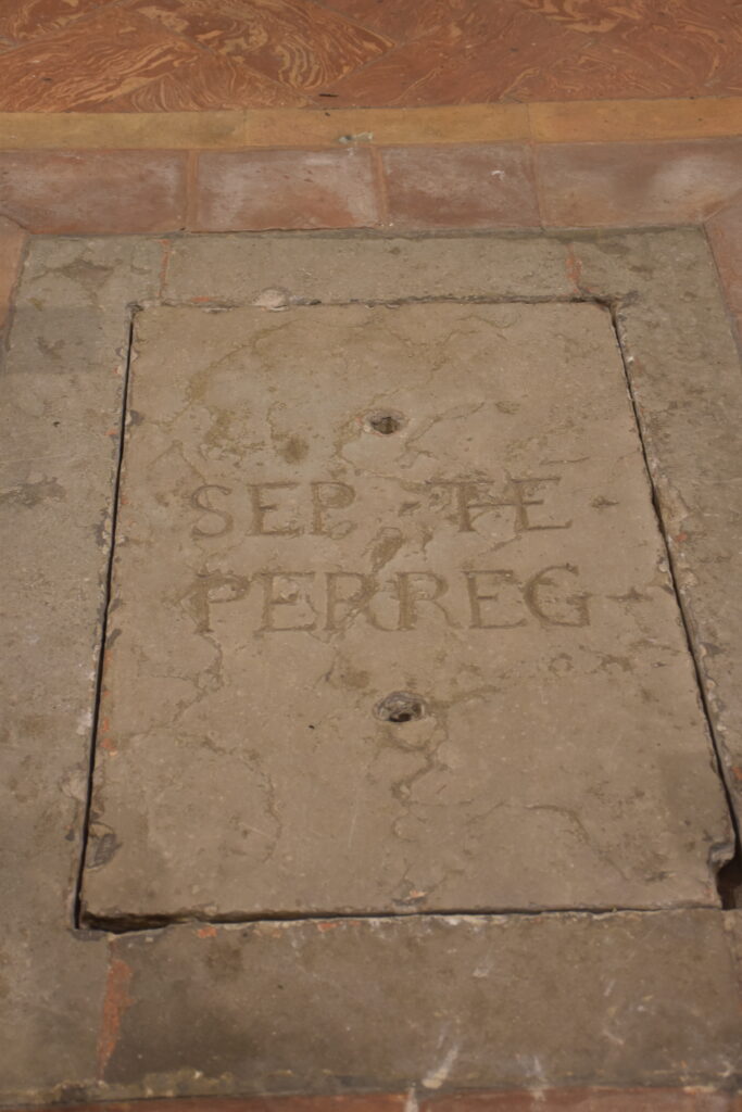 Sullo stesso lato, accedendo però all’interno della chiesa dal locale detto “Confessionale degli uomini”, si vede un altro affresco tombale che si trovava sulla facciata sud della chiesa prima della costruzione della cappella di Sant’Eurosia.