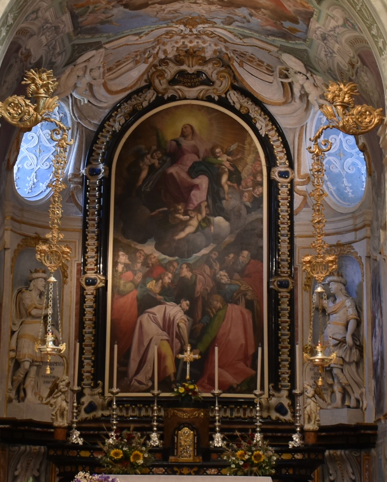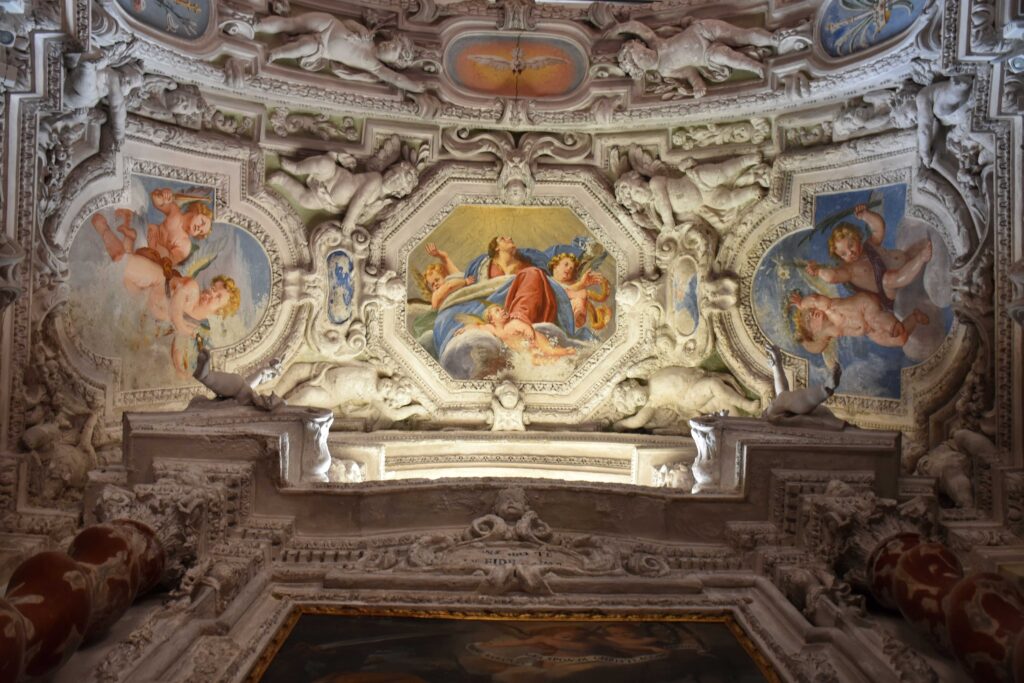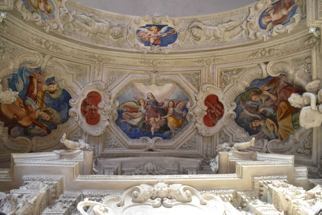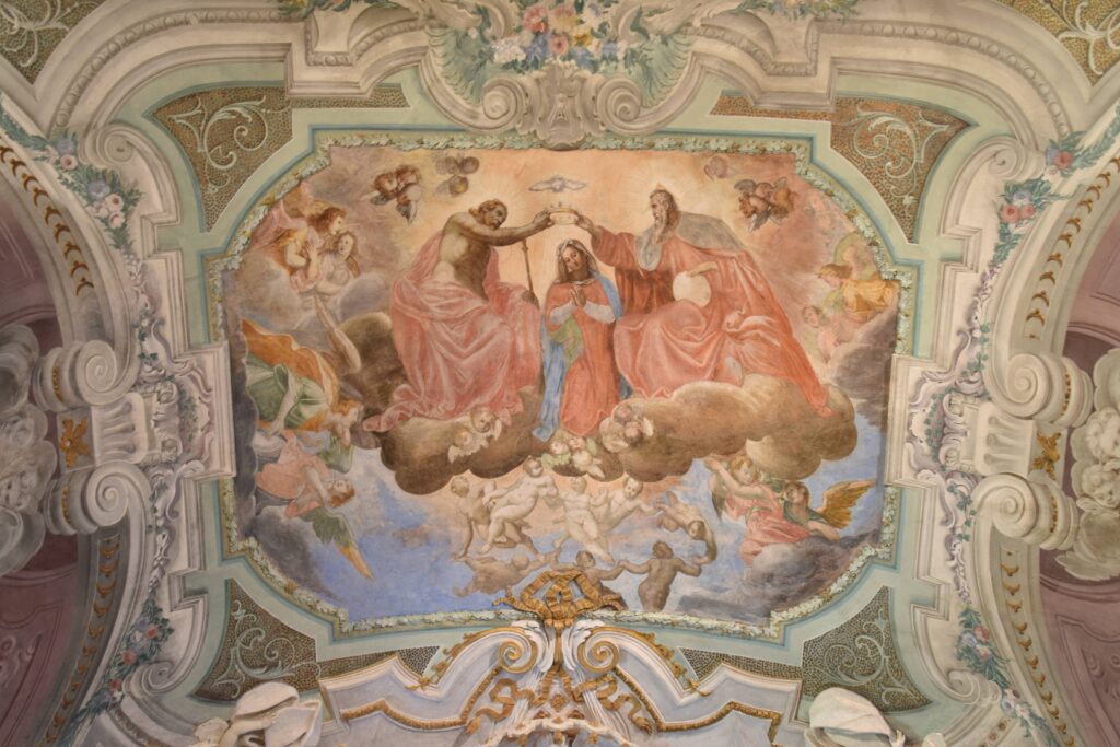 Nell’affresco sulla volta, Carlo Pozzo dipinse una Incoronazione della Vergine.