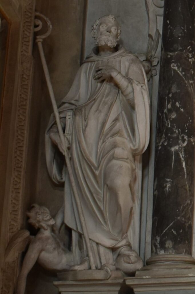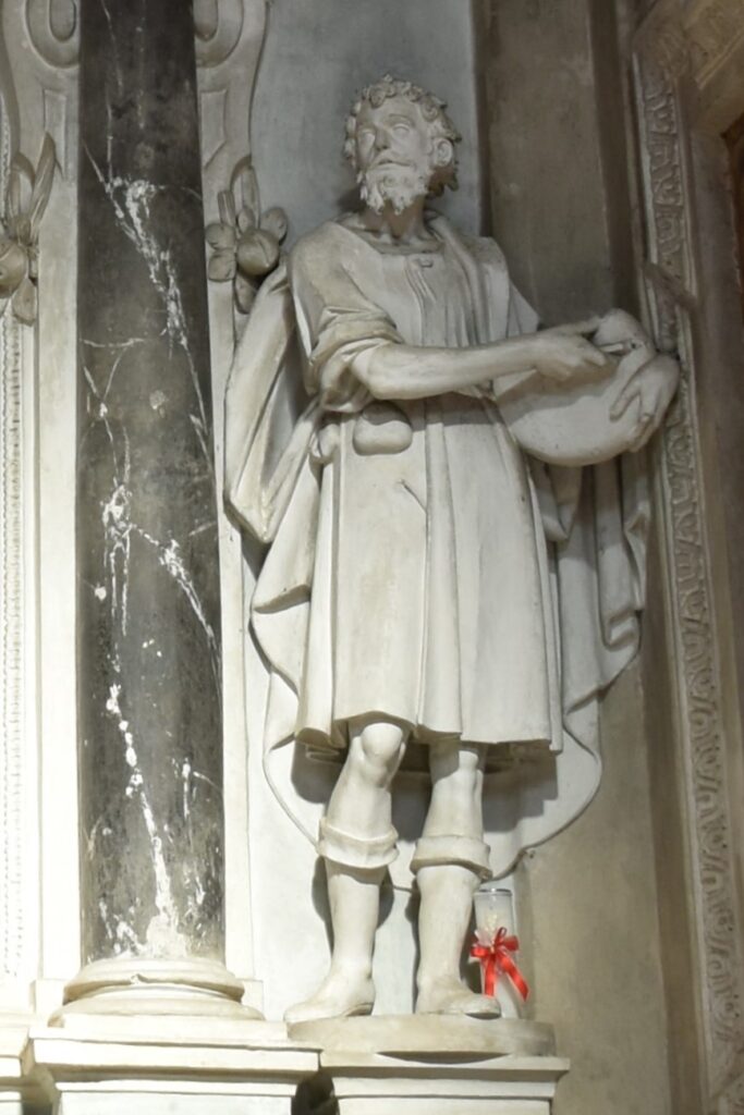 Le tre statue in stucco sono opera di Giovanni Antonio Colomba, di Arogno (1585-1650), realizzate negli anni ’30-’40 del Seicento.