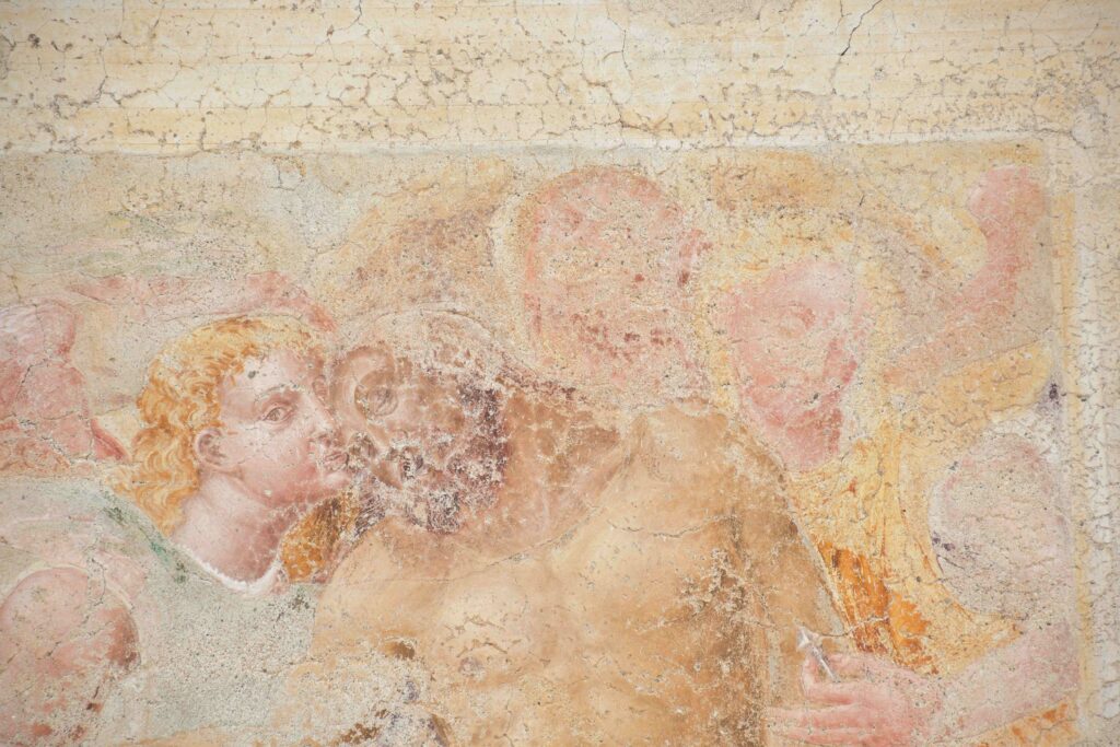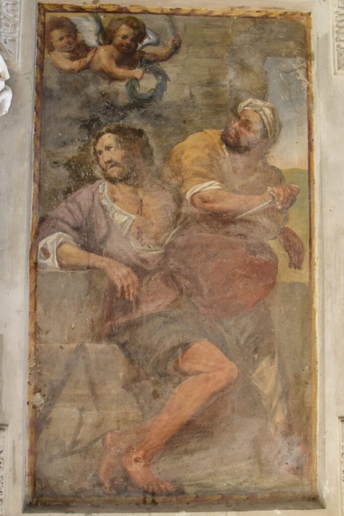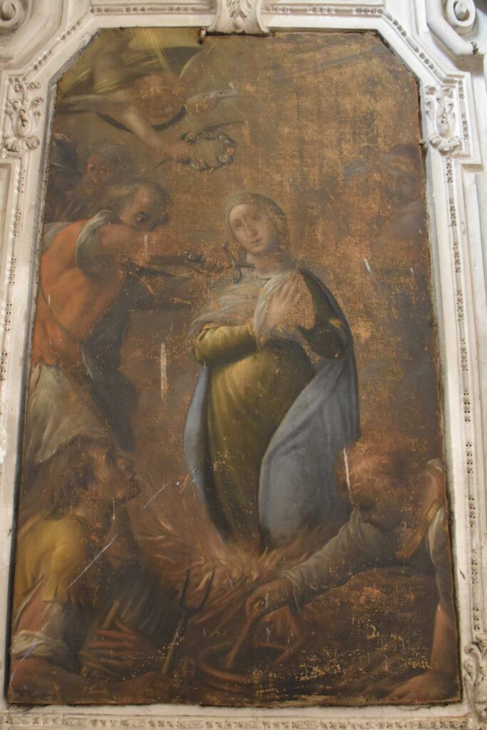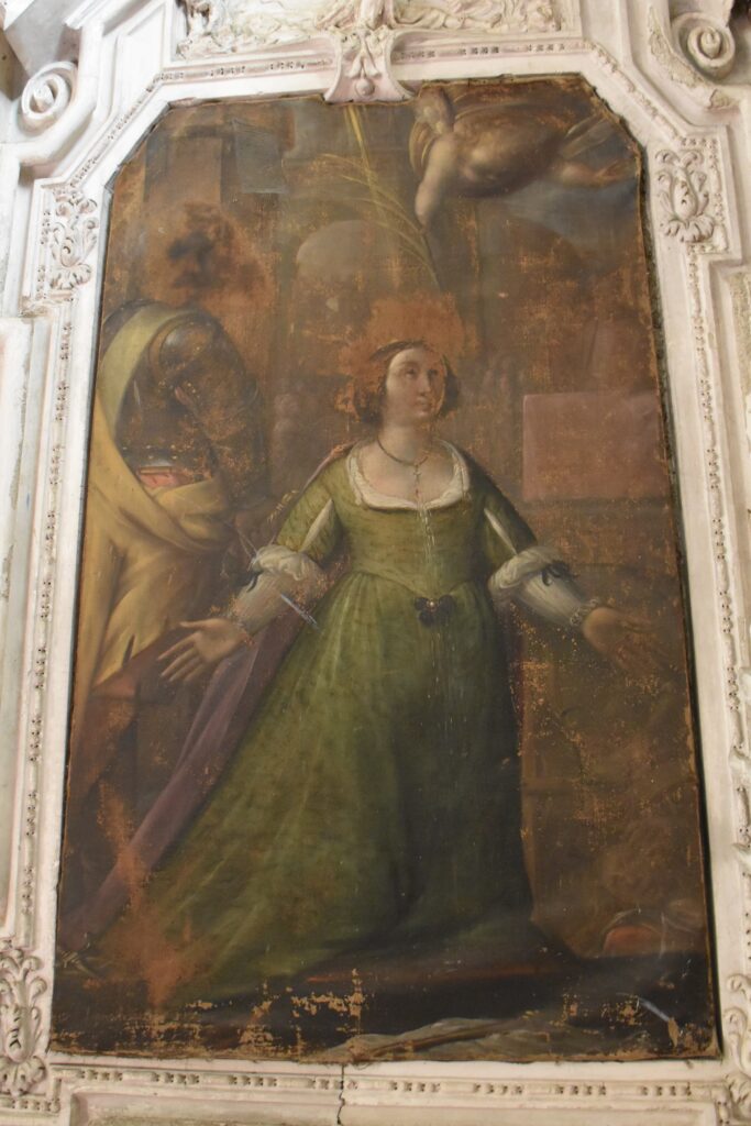 Sullo stesso lato, accedendo però all’interno della chiesa dal locale detto “Confessionale degli uomini”, si vede un altro affresco tombale che si trovava sulla facciata sud della chiesa prima della costruzione della cappella di Sant’Eurosia.