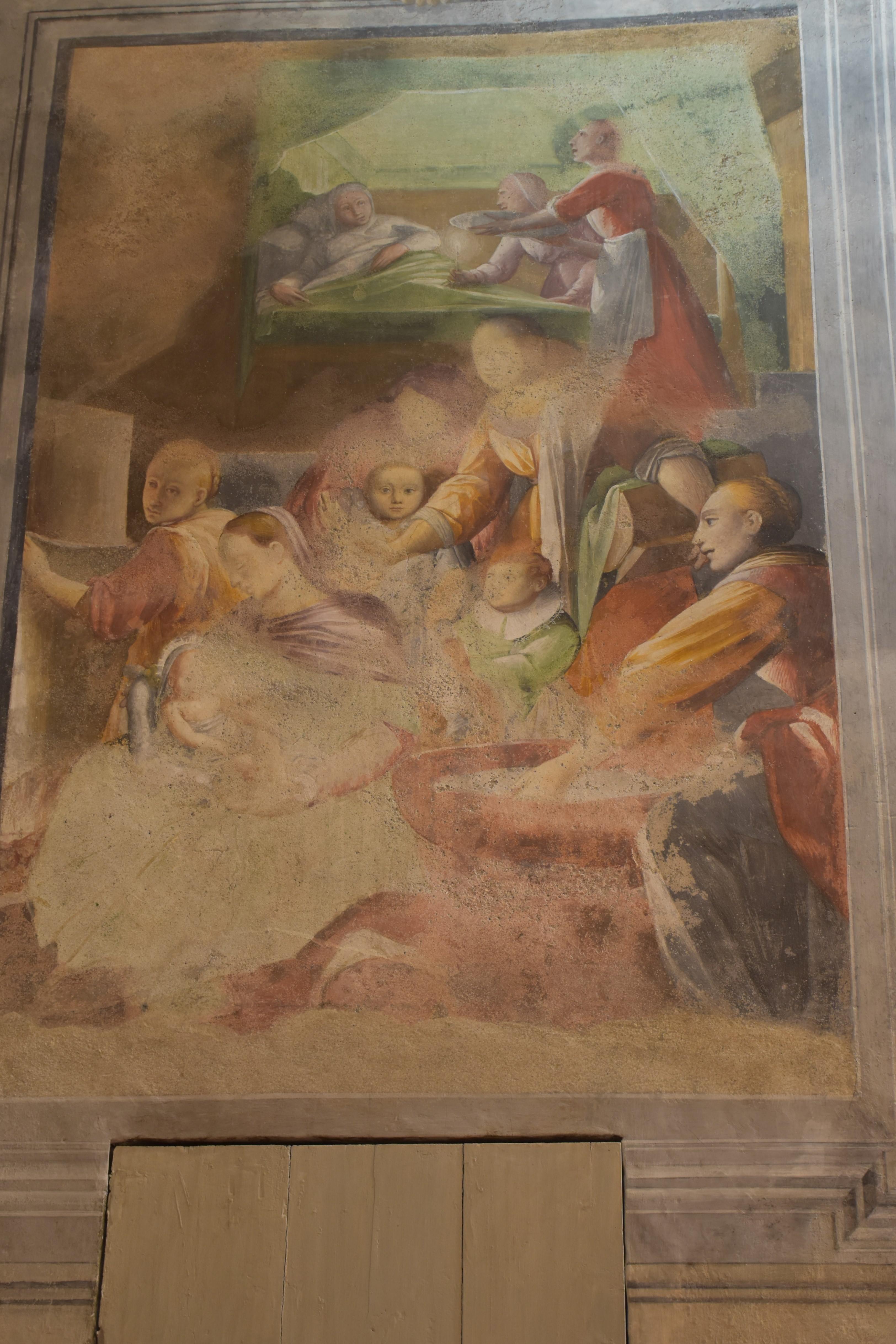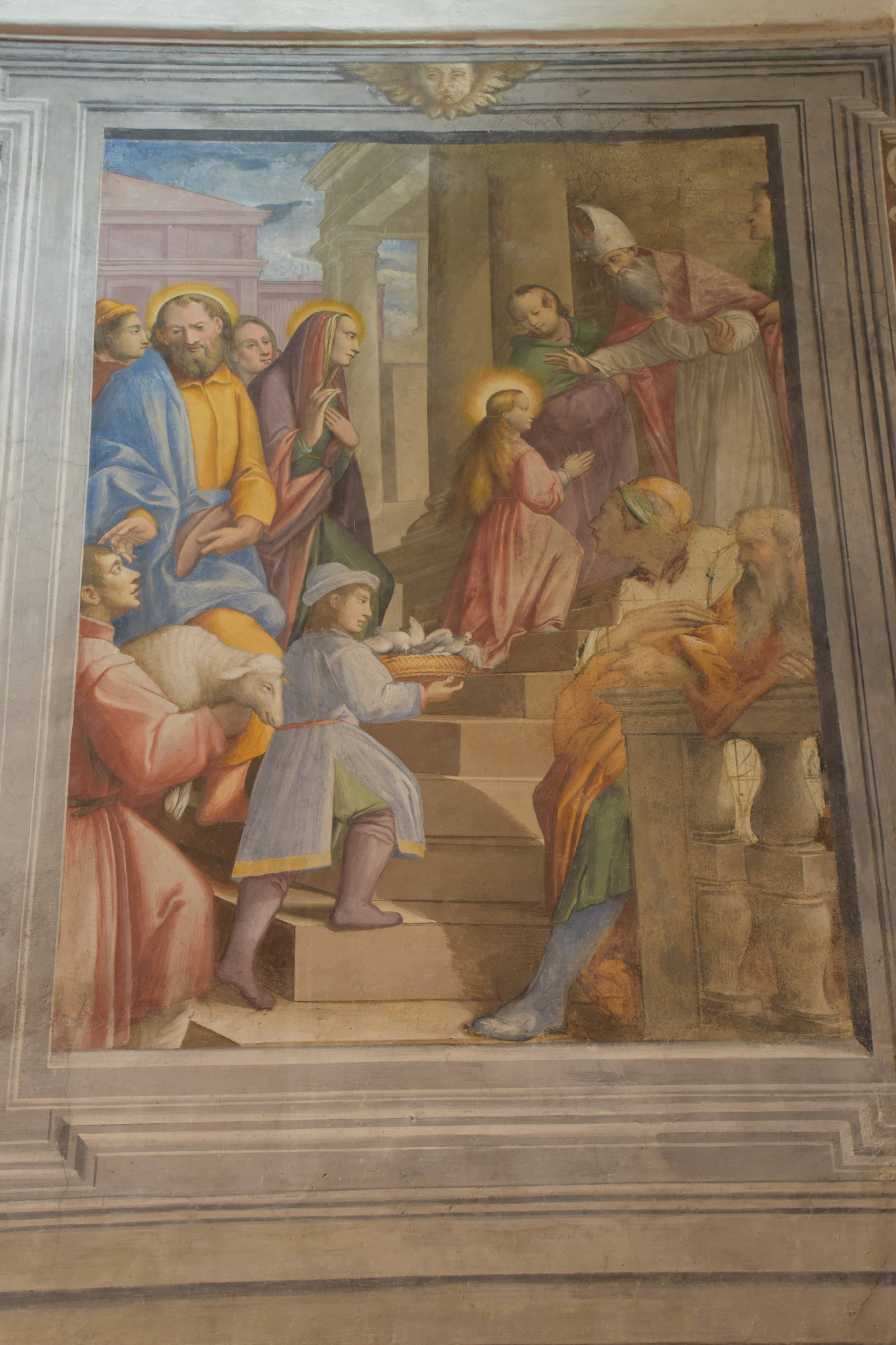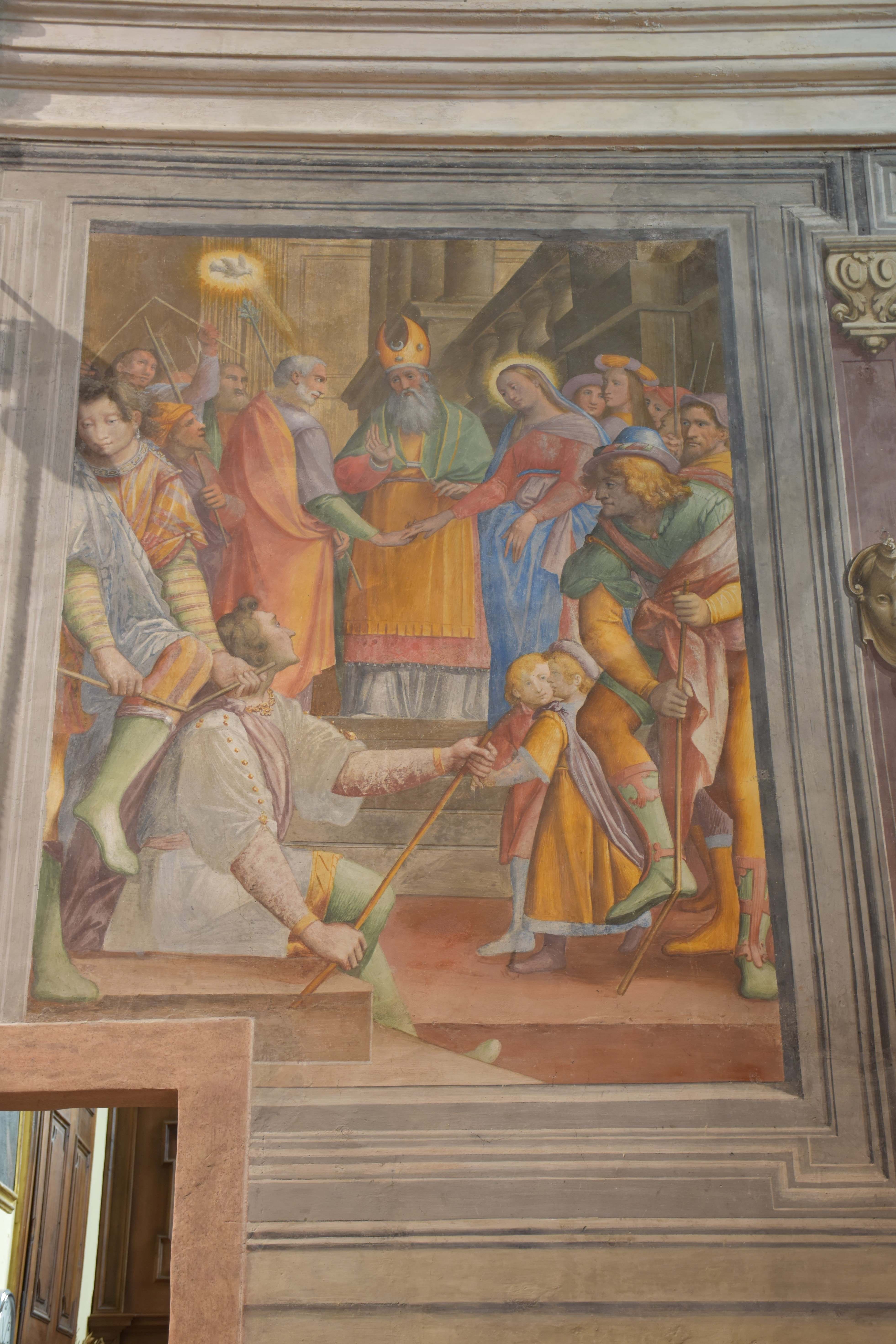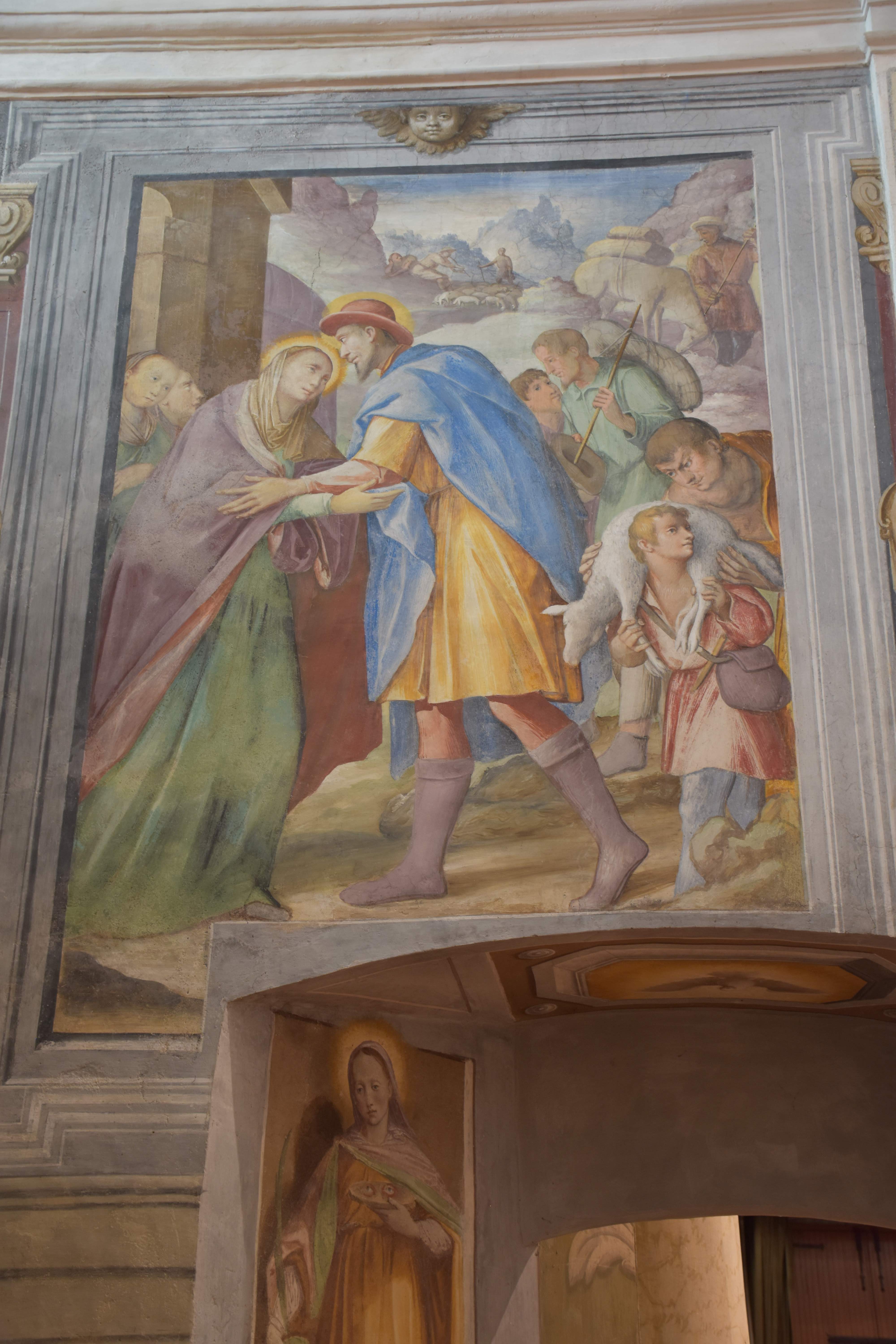 Sulle pareti, a destra, l’Incontro di Gioacchino e Anna alla Porta Aurea, la Nascita di Maria; a sinistra, la Presentazione di Maria al Tempio, lo Sposalizio di Maria.