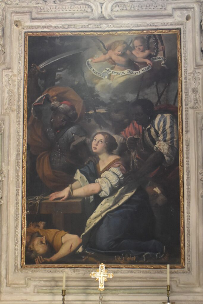 Nell’intradosso dell’apertura verso la navata, troviamo Santa Lucia e San Giacomo il Maggiore.