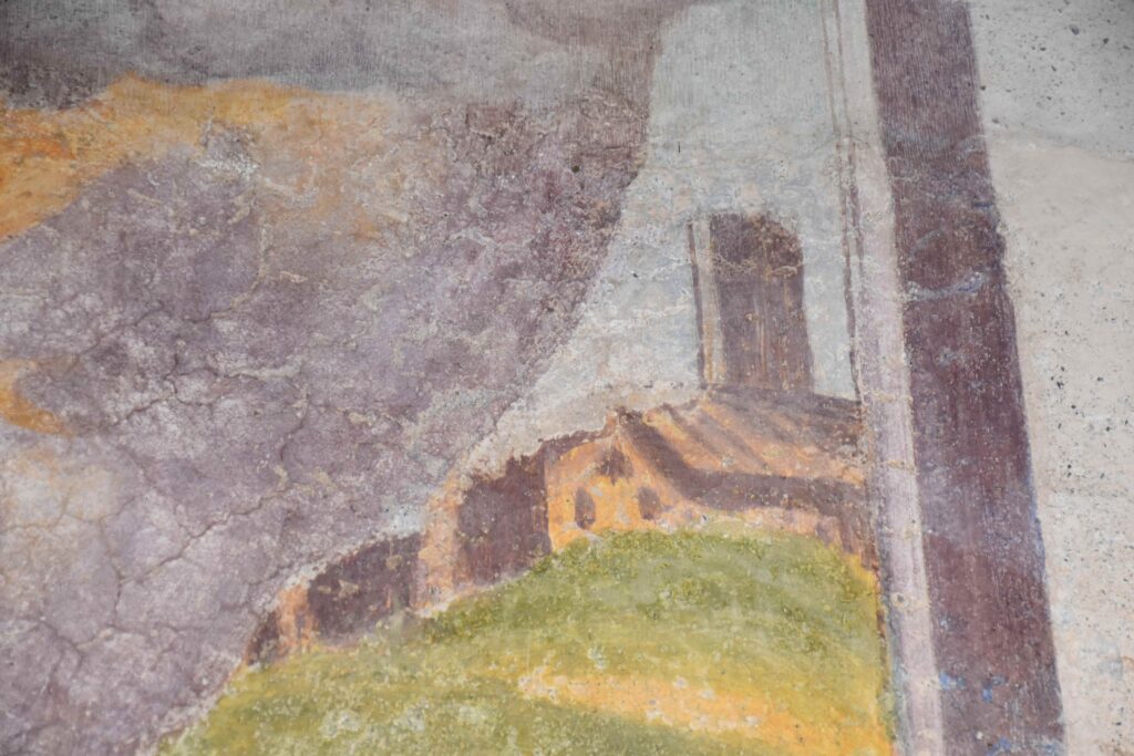Sul lato destro dell’affresco si vede, infatti, la chiesa di Puria, prima dell’intervento del 1594.