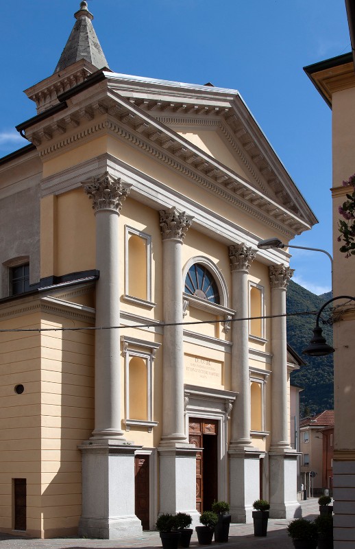 La chiesa dei Ss. Pietro e Paolo a Osteno, situata su un dosso panoramico, ha origini medievali, attestata nel XIII secolo e divenne parrocchia nel 1437. Sono visibili influenze gotiche, mentre nel Quattrocento furono realizzati la statua della Madonna col Bambino di Andrea Bregno e il campanile. Nel XVI secolo, Albertino Comanedi costruì la facciata a tre navate. La chiesa presenta opere d’arte come stucchi attribuiti a Barberini e quadri di Ferrario. Sono presenti affreschi di Domenico Quaglio raffiguranti i Martiri di San Pietro e San Paolo. La cappella terminale destra ha decorazioni pittoriche di Giovanni Battista Pozzo, con un Giudizio Universale e una volta affrescata con simboli della Passione. L’organo Alchisio e l’altare maggiore sono di stile ottocentesco.