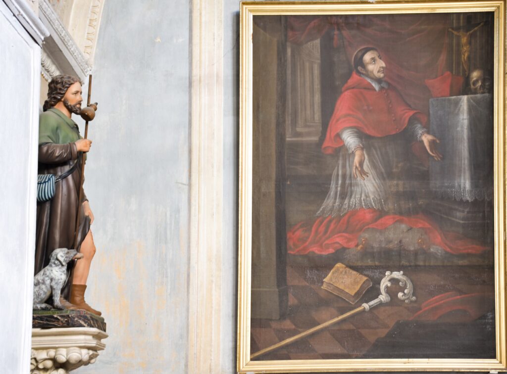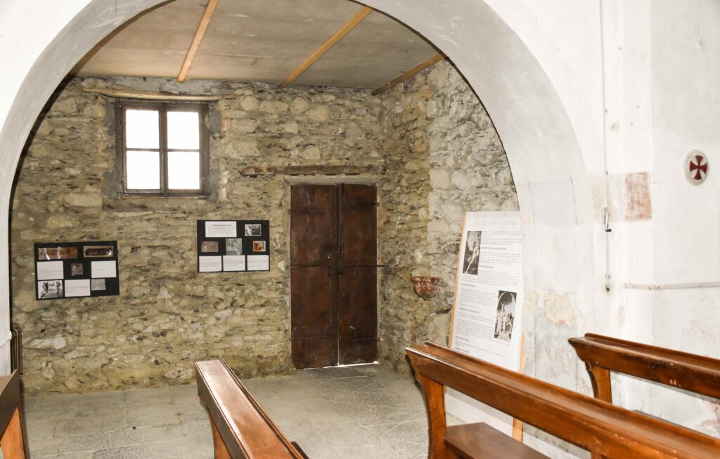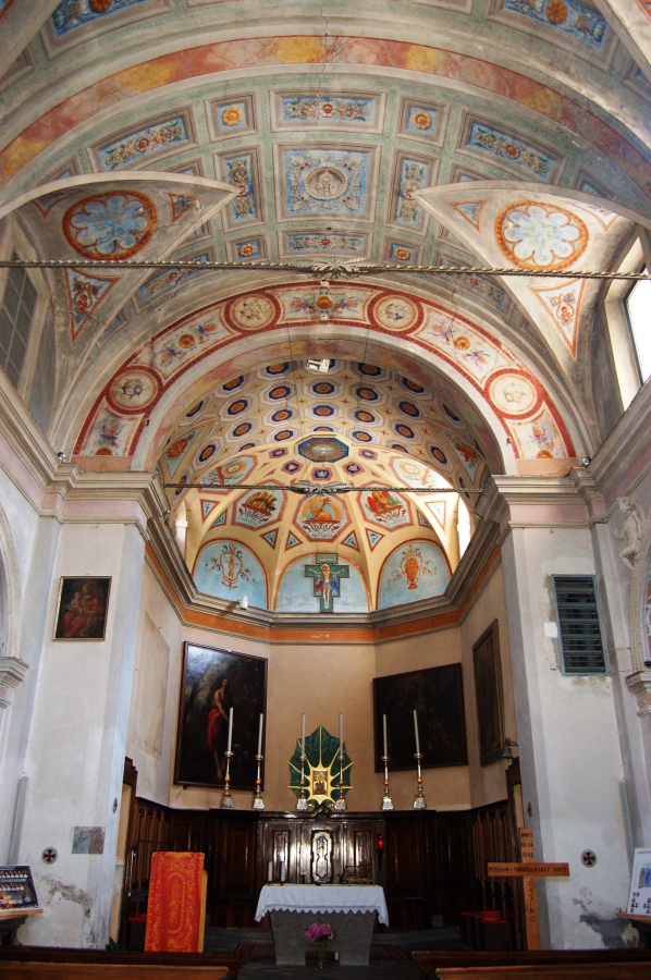 La chiesa di San Giovanni Battista di Cusino, il primo paese che si incontra risalendo la Val Cavargna, risale al XIII o XIV secolo, come attesta lo stile tardo romanico del campanile. La prima descrizione risale al 1567, quando il visitatore apostolico Gerolamo Polizio rimproverò la comunità di non avere un battistero e ne prescrisse la costruzione, che avvenne nel corso del Seicento a sinistra dell’ingresso e decorato nel 1674 con l’immagine del Battesimo di Cristo. La chiesa divenne parrocchia nel 1610, ma la ricostruzione avvenne nel 1682, come attestato dalle visite pastorali successive. Ancora oggi la chiesa conserva un assetto secentesco. L’edificio è a navata unica e di dimensioni modeste. Sulla parete destra della navata si trova un affresco medievale del XII o XIII secolo, strappato nel 1963 dal campanile poiché esposto alle intemperie e danneggiato, che rappresenta San Cristoforo con Santo Diacono e la Madonna col Bambino. Altri affreschi strappati si trovano in navata: una Madonna col Bambino tra due Santi Vescovi proveniente da un fienile sito in località Pomé, risalente al XV secolo; una Flagellazione del XIV-XV secolo, anch’essa proveniente da Pomè; una Vergine Annunciata del XV secolo; un fregio del XVI secolo decorato a grottesche di casa Vischi. La cappella di sinistra risale al XVIII secolo ed è dedicata alla Vergine del Rosario, la cui nicchia presenta una cornice in scagliola. Il paliotto, anch’esso in scagliola, proviene dall’altare maggiore poiché al centro presenta l’effige di San Giovanni Battista. Di rimpetto si trova la cappella dedicata a San Carlo Borromeo con una tela del Santo e stucchi settecenteschi. Il presbiterio voltato a vela conserva tre tele barocche: una Vergine Assunta del 1637; una Madonna col Bambino fra Santi e il donatore Ambrogio Vischi da Cusino del XVII secolo; un San Giovanni Battista del XVIII secolo. Nel 1859 fu realizzata la torre che congiunge il campanile alla chiesa, l’ultima modifica architettonica apportata.