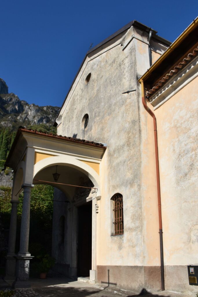 Gli esterni e il campanile presentano ancora forme semplici della fine del Cinquecento, mentre solo il pronao è un’aggiunta barocca.