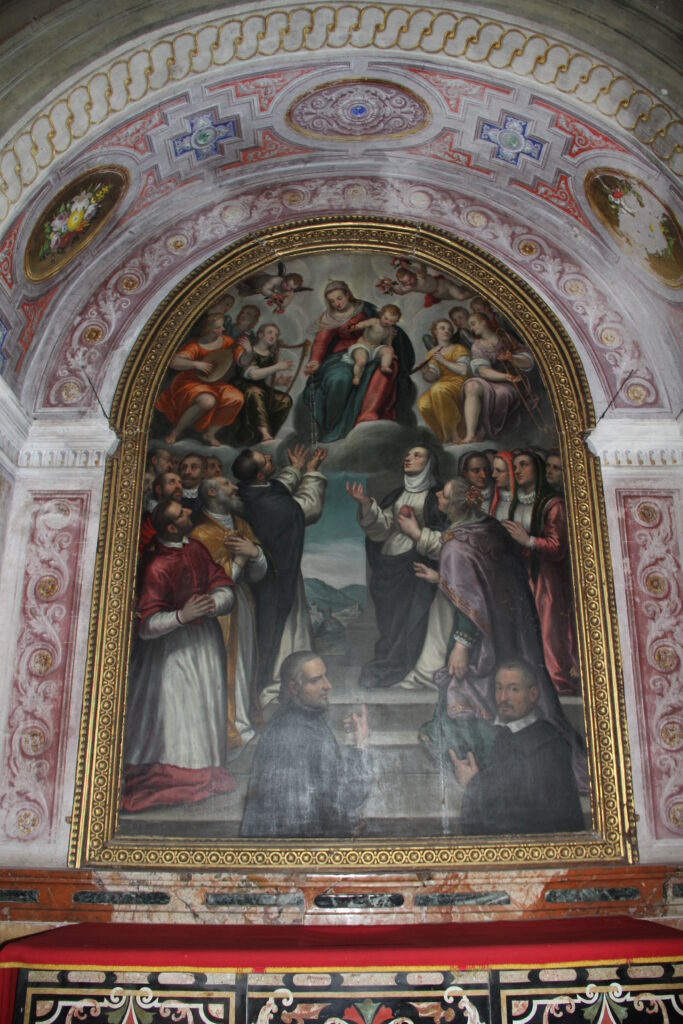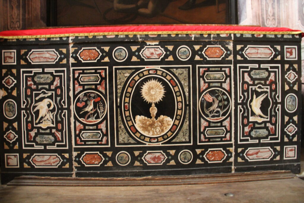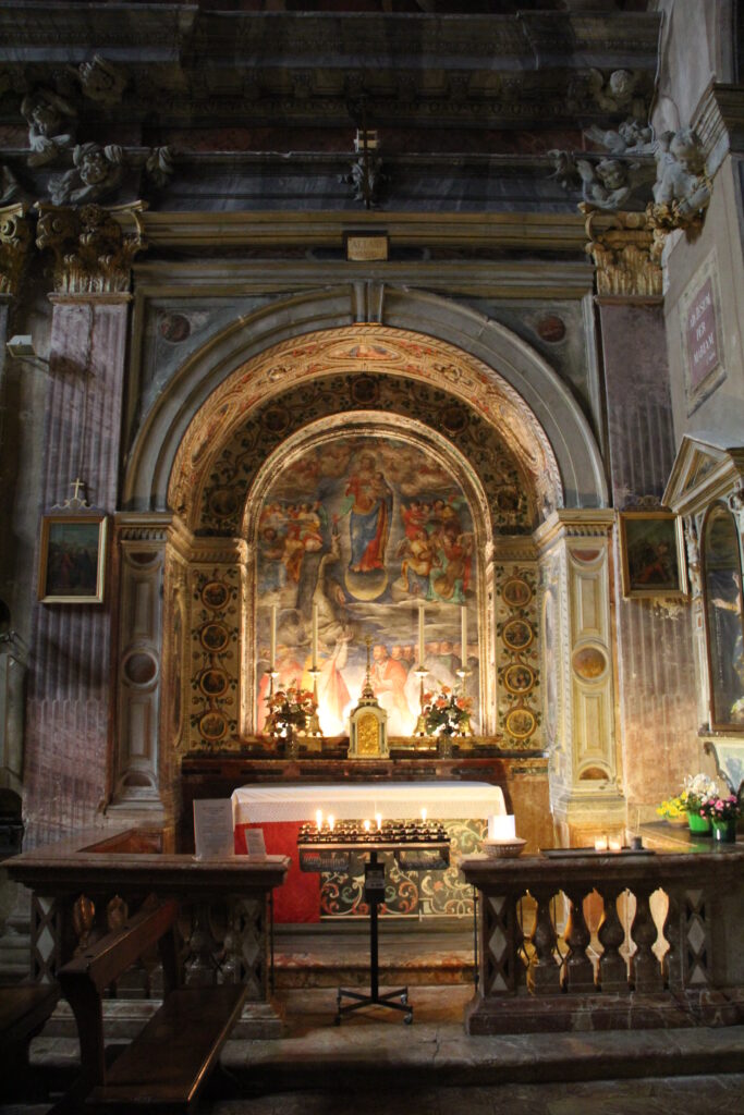 L’altare maggiore è in stile neoclassico, completato nel 1840 da un piccolo tempietto in marmo di Carrara, disegnato da Carlo Fontana, anch’egli originario di Castello.
