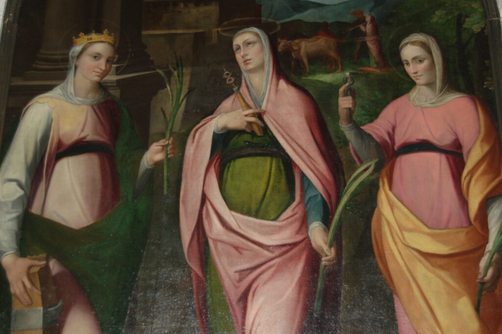 Sopra l’organo si trova una vetrata novecentesca da Carlo Forni, con San Martino che dona il proprio mantello al mendicante.