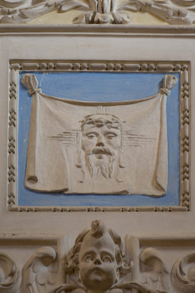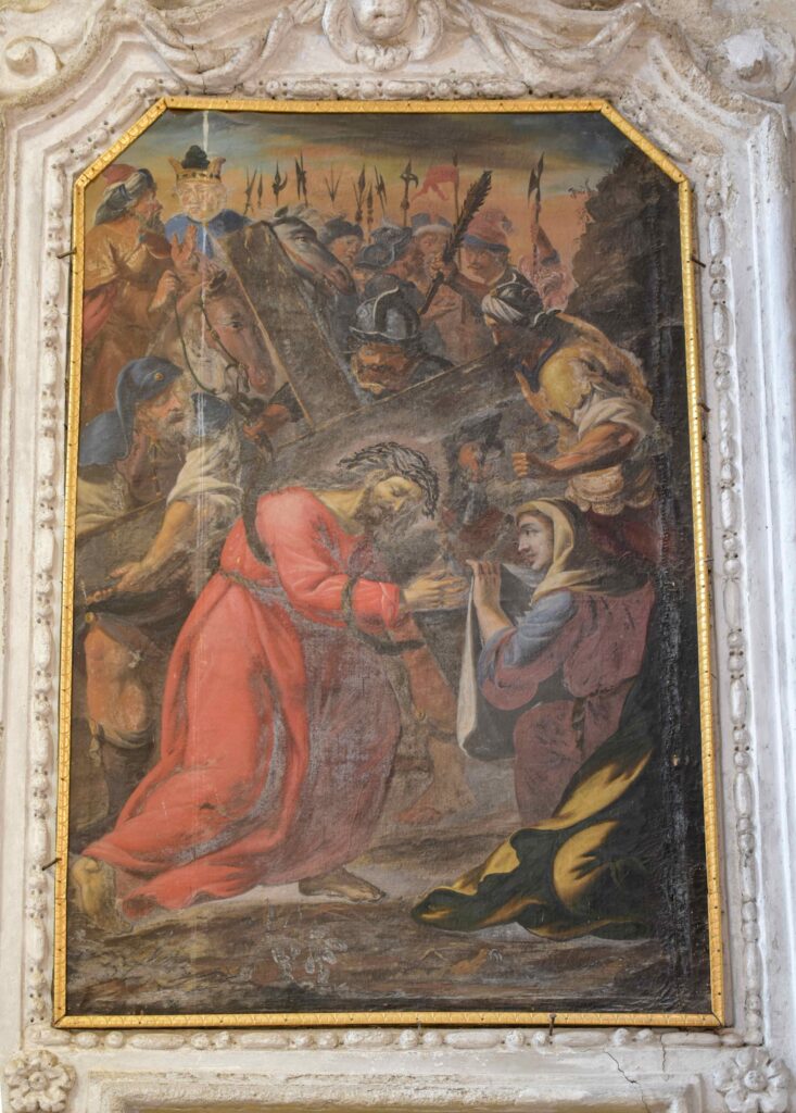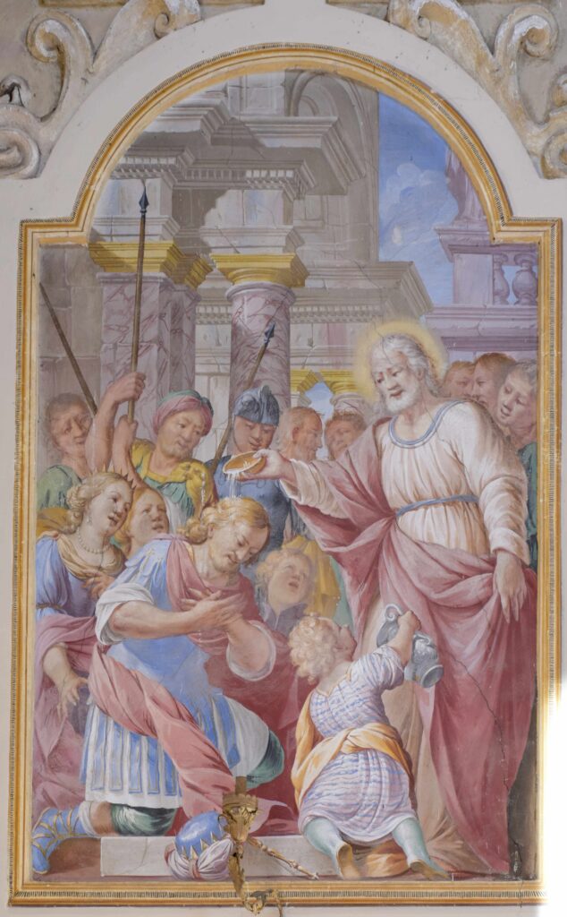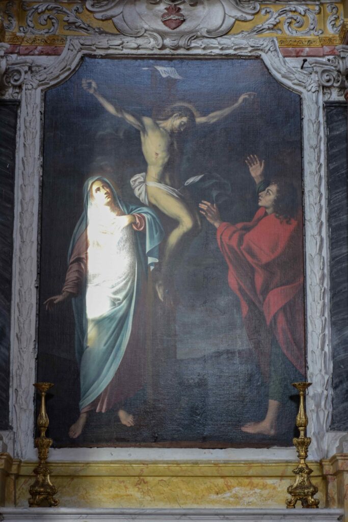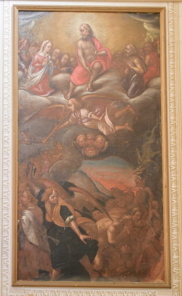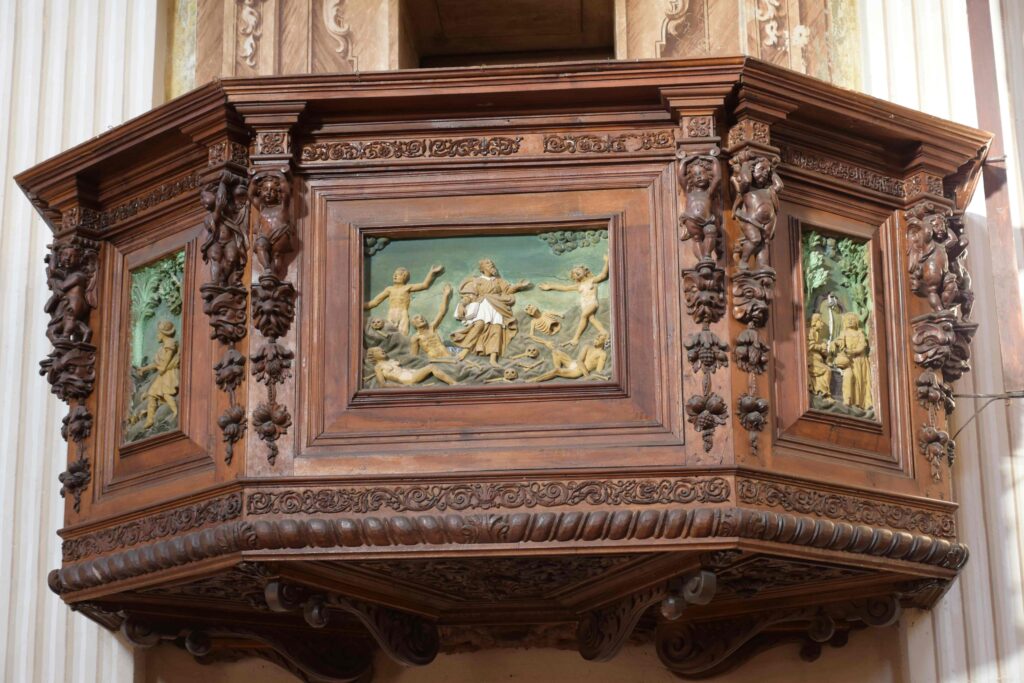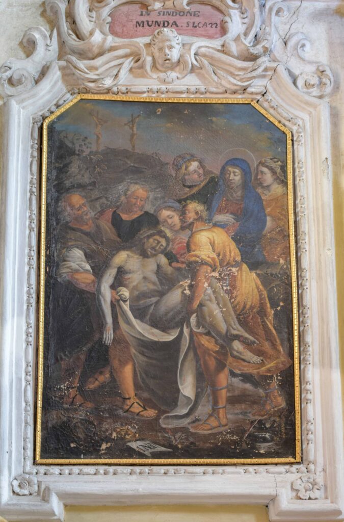 La sagrestia, oltre ad un grande mobile settecentesco, presenta un interessante affresco sulla volta con l’Allegoria della Religione, opera di Pietro Antonio I Pozzi del 1738.