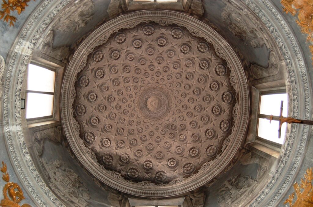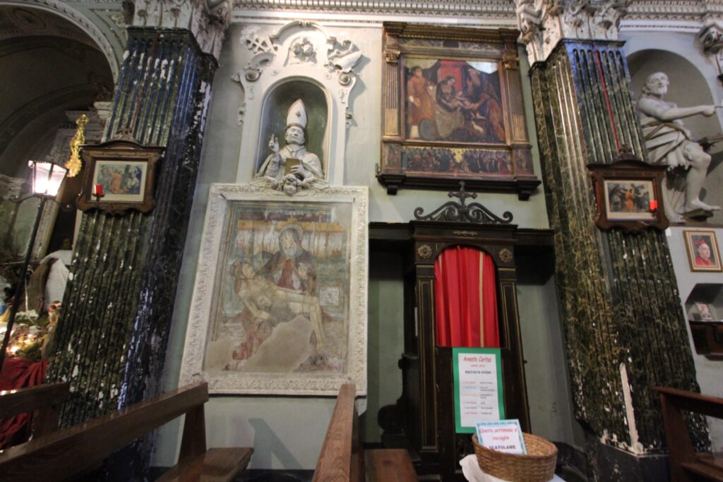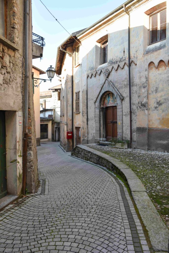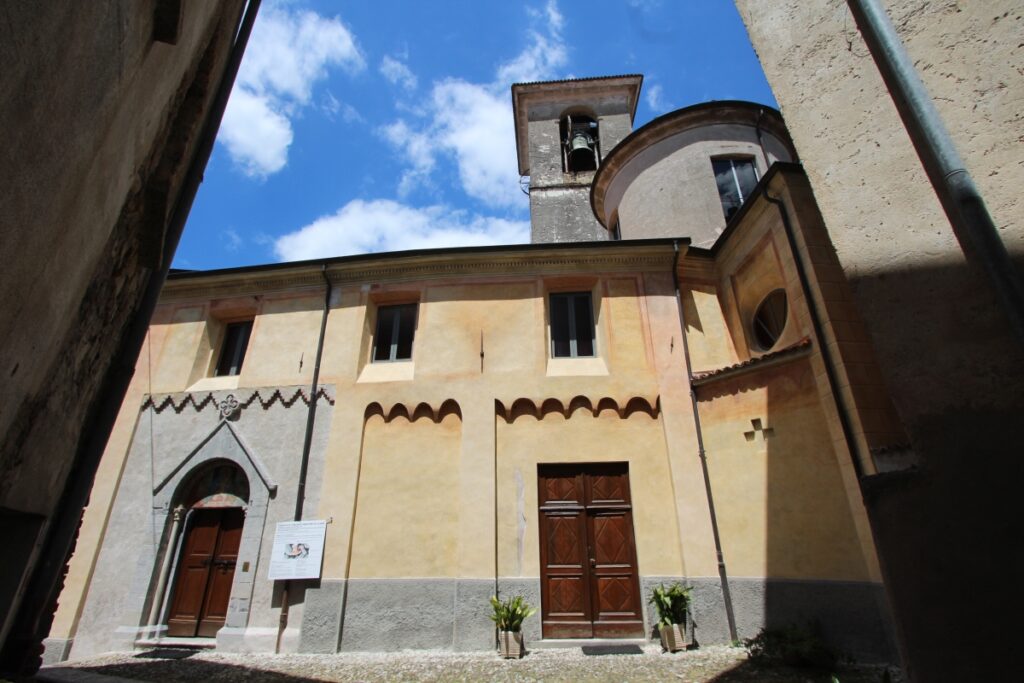 La chiesa di San Vincenzo Martire si trova nel centro di Claino, già parte territorialmente della Val d’Intelvi, ma ecclesiasticamente parte della diocesi di Milano, come tutto il Ceresio italiano orientale. La chiesa è di origine medievale ed è stata ed è citata nel Liber notitiae Sancotrum Mediolani di Goffredo da Bussero del XII secolo. Da allora, la chiesa ha subito nel corso dei secoli diversi rimaneggiamenti, che ne hanno decretato l’assetto attuale, sia architettonico che decorativo. Il battistero è l’elemento più antico presente in chiesa, datato al 1461 e posto nella prima nicchia a sinistra della chiesa. Il 3 agosto 1510 venne riconsacrata la chiesa da Galeazzo d’Orta, vescovo di Tiberiade, delegato del cardinale di Milano Ippolito I d’Este. La chiesa di Claino fu eretta in parrocchia nel 1617 per volere del cardinal Federico Borromeo, arcivescovo di Milano. La chiesa non ha una facciata, poiché si trova architettonicamente circondata dalle case circostanti. Il campanile della chiesa, rialzato nel corso dei lavori del 1847 che interessarono la volta, presenta un coro di campane fuse negli anni ’40 dell’Ottocento dalla ditta Pruneri di Grosio. Lo stesso anno, lo scultore clainese Marco Antonio Prestinari realizzò un riquadro marmoreo con l’Adorazione dei Pastori per il retrocoro del Duomo di Milano, di cui lasciò poco dopo una copia che si trova sulla parete destra della chiesa di Claino, nella prima campata, contornata da stucchi secenteschi di ambito intelvese. Probabilmente realizza anche il drappo in stucco. Un interessante affresco della Pietà si trova sulla parete sinistra della seconda campata, attribuita al Maestro Gentilino e risale al 1492. L’affresco è racchiuso in una cornice barocca e sormontata da una nicchia a stucco con l’effige di San Carlo Borromeo. Nel 1562 si realizzò l’ancona lignea raffigurante la Vergine col Bambino, S. Giovannino, S. Vincenzo, S. Antonio Abate, che si trova sulla stessa parete dell’affresco del Gentilino. Nel 1663 vennero realizzate le colonne a capitello corinzio che scandiscono la navata, ridipinte ad effetto finto marmo negli anni’50-’60 del XX secolo. Nel 1594 la Confraternita del Rosario fece costruire una cappella dedicata alla propria Santa titolare che sostituì quella vetusta dei Santi Mamete e Agapito. La cappella fu ristrutturata nelle sue forme attuali dopo 1751 e corredata di statue novecentesche realizzate dallo scultore G. Bambino. Sulla parete sinistra si trova la tela della Purificazione di Maria realizzata da Rocco Comanedi da Cima, allievo di Carlo Innocenzo Carloni, e risalente alla fine del XVIII secolo. La cappella di rimpetto, dedicata a Crocifisso, fu anch’essa descritta durante la visita pastorale del cardinal Pozzobonelli (1751). Essa presenta un paliotto che è la copia esatta di uno dei paliotti della Certosa di Pavia. Il Crocifisso, posto nella teca lignea dell’ancona d’altare, è di probabile origine cinquecentesca. La volta della cappella presenta una ricca decorazione a stucco settecentesca con i tondi delle Virtù. Tutti i paliotti in scagliola furono stati realizzati nel XVIII secolo da Domenico Pagani da Claino, di cui il più originale è quello dell’altare maggiore che rappresenta S. Ambrogio (patrono della diocesi di Milano di cui Claino fa parte) entro la conchiglia, simbolo di nascita sacra. Lo scultore Pietro Pagani, anch’egli originario di Claino, entro il 1855, realizzò a stucco il busto con l’Ecce Homo che si trova sulla parete destra, nella seconda campata. In controfacciata si trova l’organo del 1824, costruito dall’organaro Paolo Chiesa, dotato di cantoria lignea decorata con strumenti musicali ad effetto finto oro. L’organo fu revisionato da Felice Ondei a inizio Novecento. La volta fu affrescata nel 1847 da Vincenzo de Bernardi da Claino, specializzato in decorazioni neopompeiane a monocromo che scandiscono tutta la navata, entro cui inserì alcune figure di Angeli e una Gloria di San Vincenzo. Il grande capolavoro di De Bernardi fu però la decorazione illusionistica o trom l’oeil posta sulla volta del tiburio della chiesa, aggiunta nel 1847.Qui, De Bernardi dipinse finti cassettoni a scomparsa, che puntano verso il punto centro focale, l’occhio di Dio Padre. De Bernardi è autore anche dei pennacchi con i Simboli degli Evangelisti inscritti in panoplie o trofei sacri dipinti a finto effetto bronzo. Si segnala anche la presenza di un transetto, che nella parte destra presenta una tela secentesca, mentre sulla sinistra è nota come “cappella di San Pancrazio”, poiché vi si trova una nicchia con un busto in stucco del Santo guerriero, titolare anche una nota chiesa di Ramponio, il cui culto è di antichissima data in Val d’Intelvi. Questo spazio fu originariamente la sagrestia, sostituita dall’attuale che presenta un grande mobile in noce di origine settecentesca e un affresco sulla volta con la Gloria di San Vincenzo.