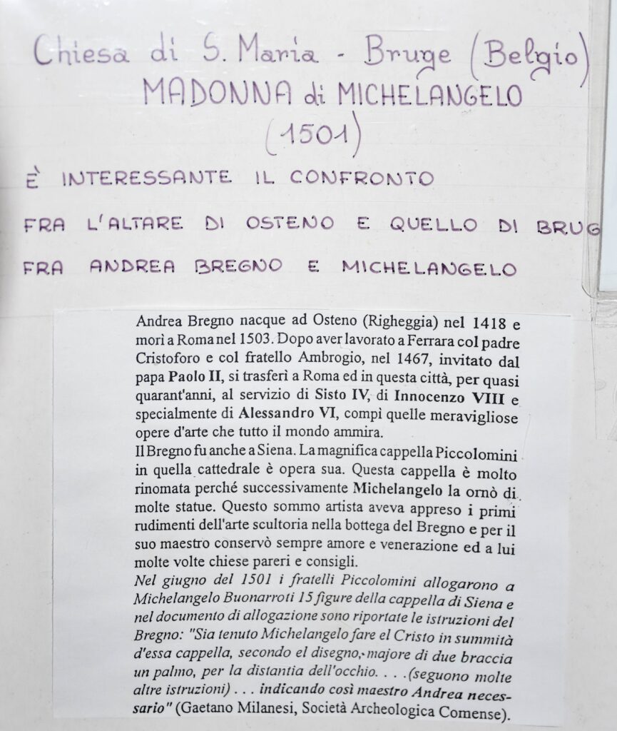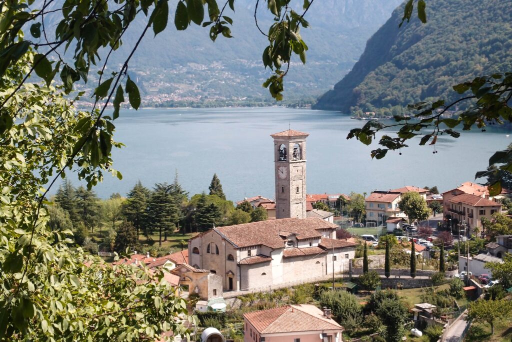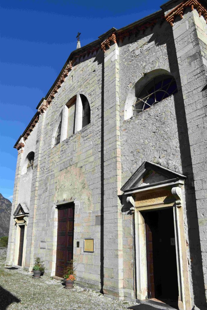 La chiesa dei Ss. Pietro e Paolo di Osteno si trova in posizione rialzata su un dosso che domina il paese a lago. La chiesa è attestata già nel XIII secolo, come una cartella comprova, riferendoci che i capi della Comunità avevano diritto, per preminenza, ad una sedia speciale in chiesa e come questo fatto fosse causa di litigi. Il 16 maggio 1437 la chiesa di San Pietro si staccò ufficialmente dalla Pieve di Porlezza e divenne chiesa parrocchiale, con giurisdizione su Claino, Righeggia e Barclaino. Per via di questo evento, con ogni probabilità, iniziarono i lavori di riedificazione della chiesa. La chiesa era forse in origine a croce latina. Una serie di archetti in cotto sotto grondale, ancora visibili lungo le pareti laterali esterni, attesta una fase gotica, simile a quella della chiesa dei Ss. Mamete e Agapito a San Mamete in Valsolda. Al Quattrocento risale l’opera artistica più celebre della chiesa: la statua della Madonna col in Bambino dello scultore Andrea Bregno da Righeggia, maestro di scultura di Michelangelo a Roma. La Madonna col Bambino si trova nella cappella terminale della navata sinistra. Bregno, di ritorno da Ferrara e in procinto di partire per Roma, probabilmente tornò brevemente 1464 a Osteno per realizzare anche il tabernacolo a muro in pietra scura che si trova nel presbiterio. Inizialmente lo realizzò per il battistero, ma oggi è collocato a sinistra nel presbiterio. Fra il 1501 e il 1505 Albertino Comanedi da Osteno, già affermato architetto nel bresciano e in Trentino, iniziò i lavori di costruzione della nuova facciata, che è identica a quella della chiesa di Santo Stefano a Condino, in Trentino, progetta dallo stesso nel 1495. La chiesa divenne un grandioso edificio a tre navate, assetto ancora oggi conservatosi. La chiesa presenta un alto ed imponente campanile, prescritto dai dettami delle visite pastorali di San Carlo a fine Cinquecento, ma ultimato soltanto nel 1630. Il 2 agosto 1510 la chiesa venne consacrata da Galeazzo d’Orta, vescovo di Tiberiade, delegato del cardinale di Milano Ippolito I d’Este, e dal cardinale vescovo di Pavia. Nel 1530, per volere dei notai Francesco e Giovanni Muttoni di Righeggia, venne costruita la cappella di Sant’Antonio da Padova e decorata a stucco nel Seicento, che fu consacrata già nel 1567. Gli stucchi di questa cappella sono attribuiti a Giovanni Battista Barberini da Laino, che li realizzò nel 1664, insieme alle quattro grandi statue di Sant’Agata e Santa Apollonia, Santa Caterina d’Alessandria e Santa Lucia, trasformate nel corso dell’Ottocento in Carità e Vigilanza, camuffandone gli attributi tipici. Al Barberini sono forse ascrivibili anche gli stucchi coevi della cappella di San Carlo. Nel 1732 Giovanni Battista Bianchi eresse a sue spese l’altare dedicato alla Santissima Vergine Addolorata, detto della Pietà, terzo a sinistra. Dato che fu un artista attivo a Schönbrunn, gli stucchi sono a lui attribuiti.